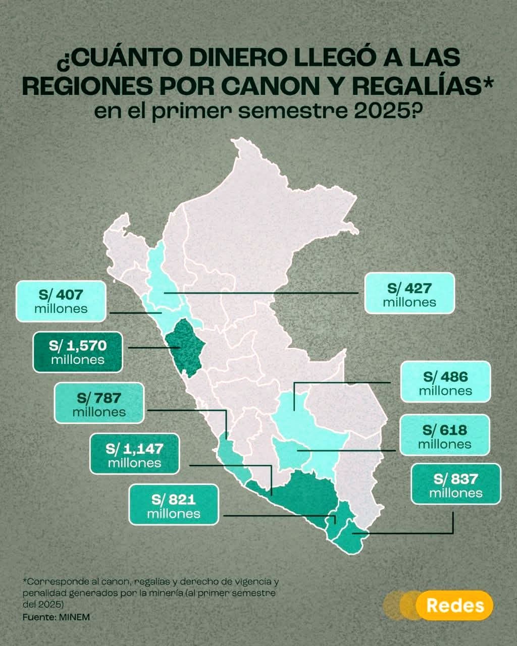 Corresponde al Canon, Regalías y derechos de vigencia y penalidad generados por la minería (al primer semestre del año 2025).